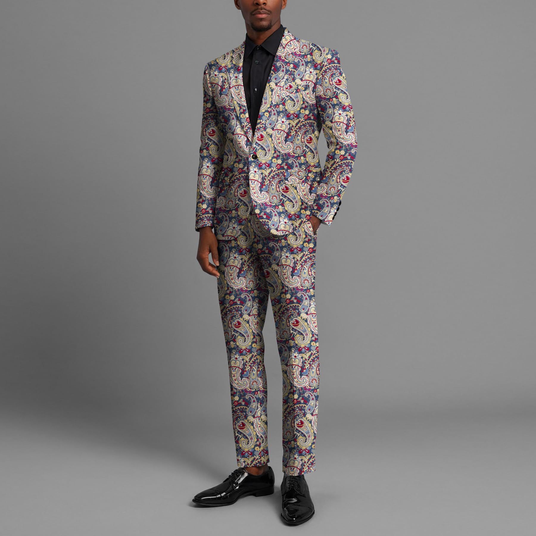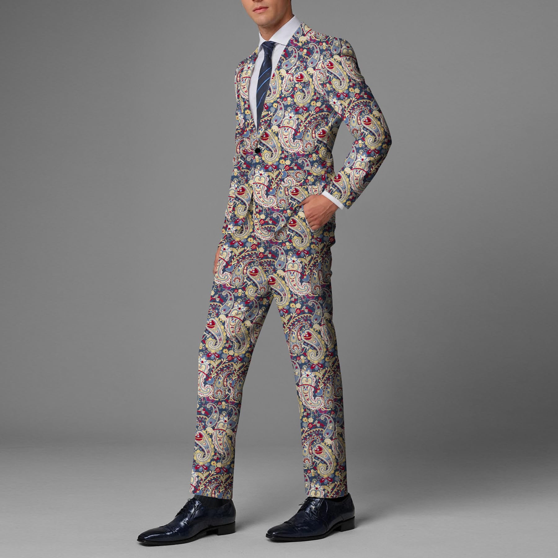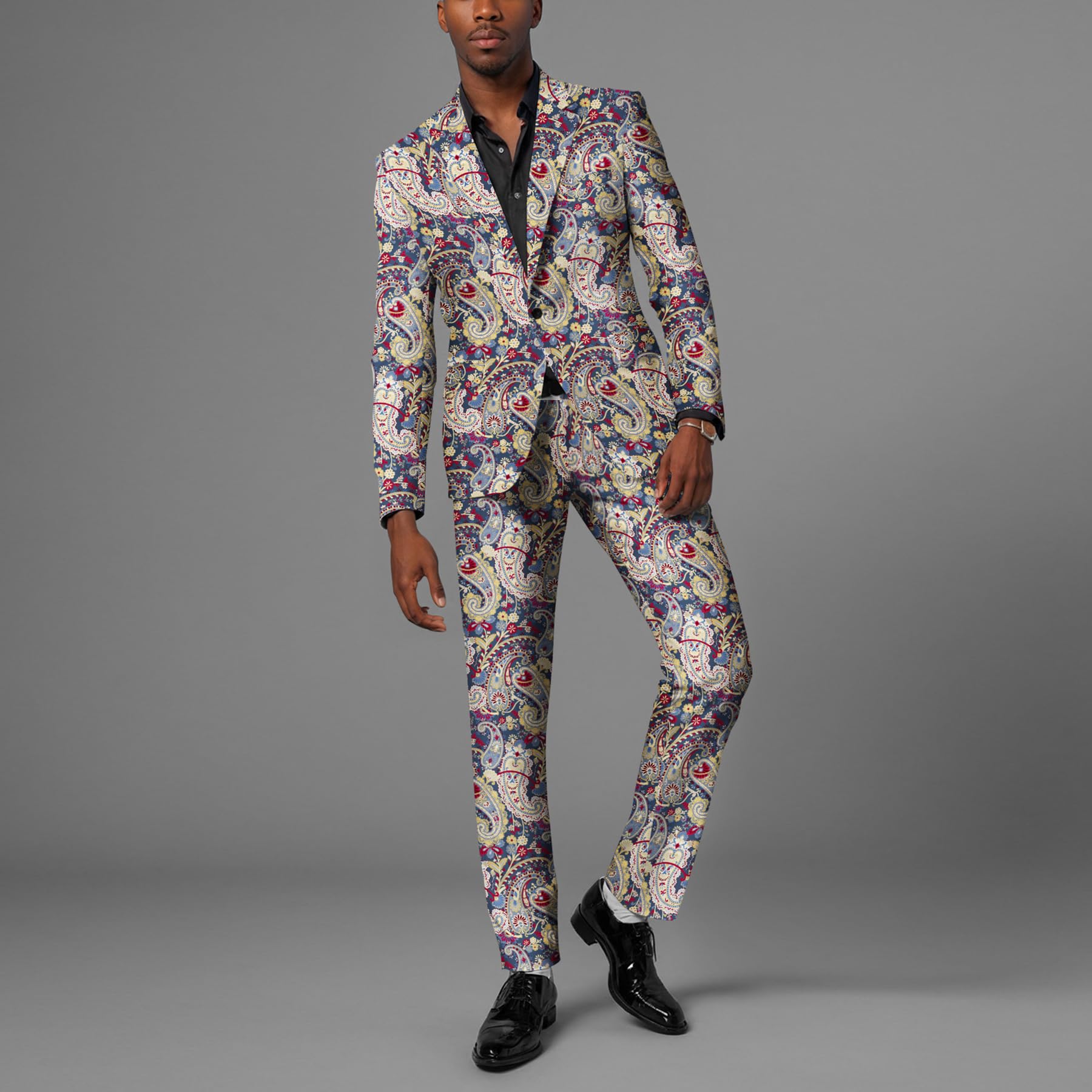 BYBNOLL Men’s 2 Pieces Suit Pattern Printing Tuxedo Suit Set Notch Lapel Jacket Pants for Party Wedding Prom Blue Red