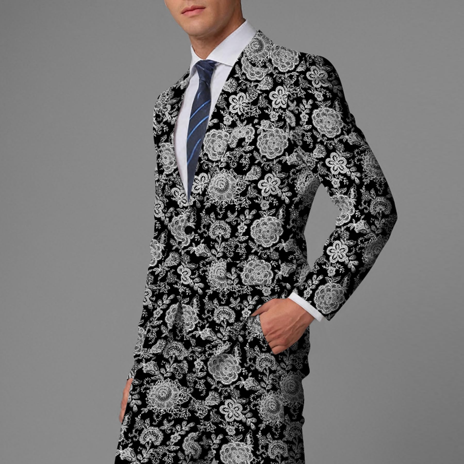- STYLISH DESIGN --- The print adds a touch of style to the suit with an aesthetically pleasing, classic single-button closure. Elevate your closet with this men's sport coat and jacket.