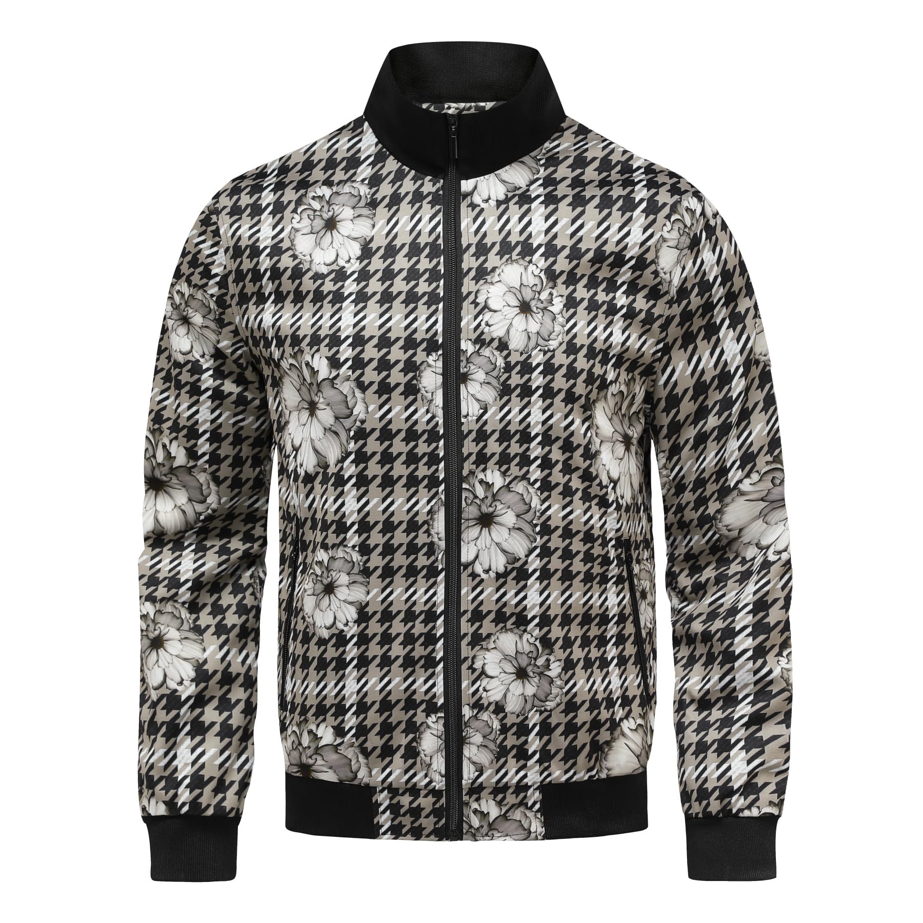 BYBNOLL Mens Casual Bomber Jacket Lightweight Zipper Floral Print Stylish Varsity Jacket for Men