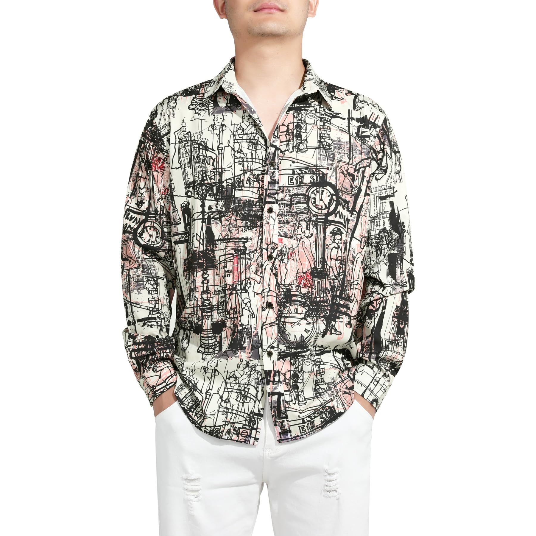 - Easy Pairing - The unique print and classic lapel design of this long sleeve shirt make it easy to mix and match with different outfits. Whether you pair it with jeans or dress pants, you'll always look sharp.