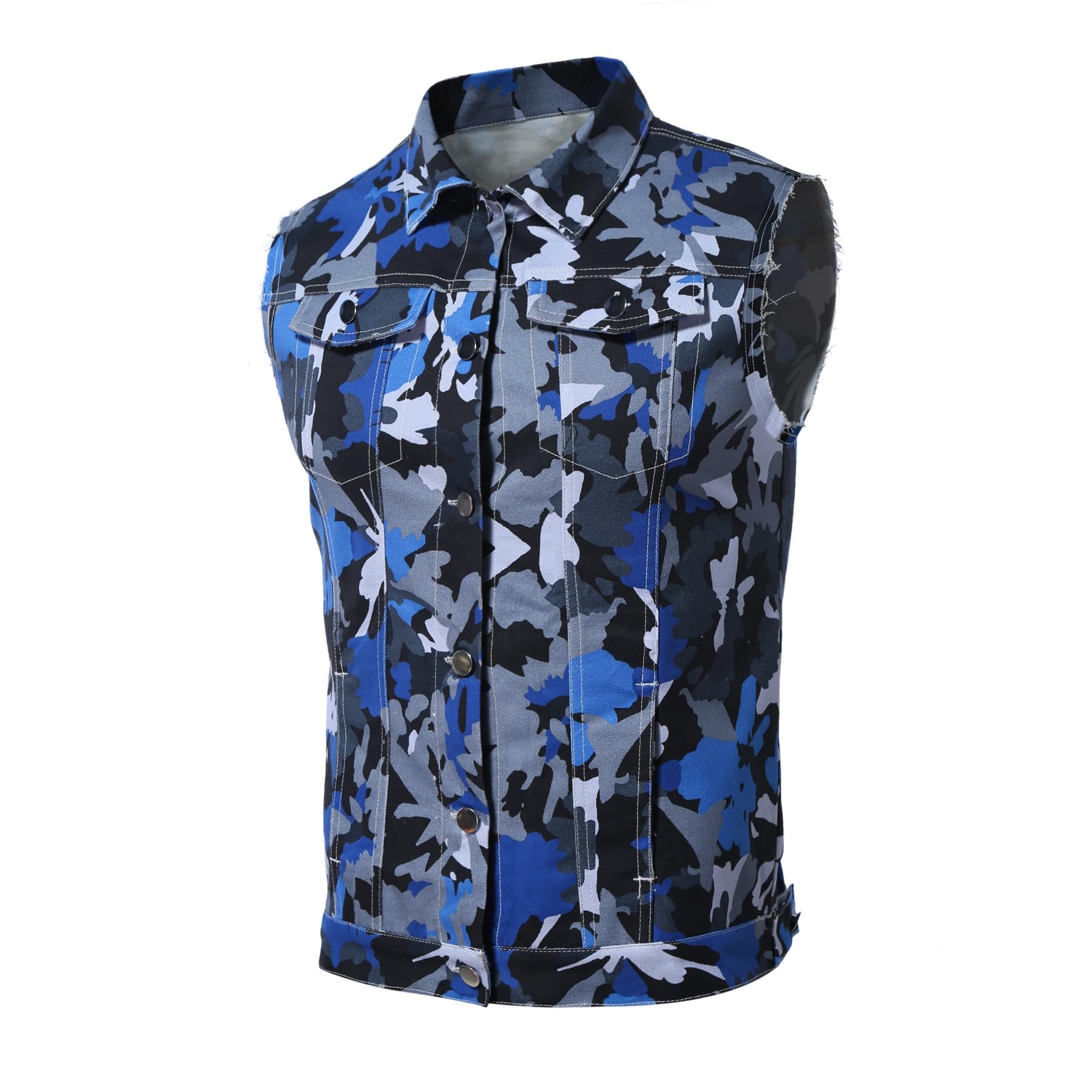 BYBNOLL Men's Denim Vest Sleeveless Casual Jean Vest Button Camouflage Print Jacket Outerwear Vest