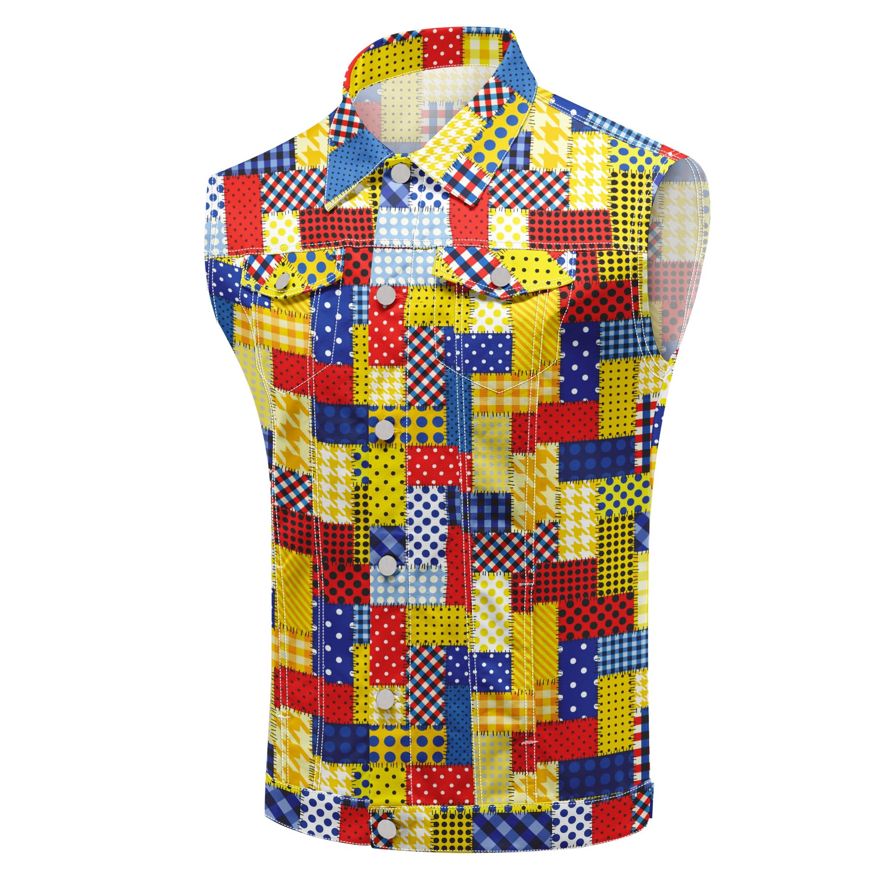 - Stylish Design --- The stylish and innovative print design gives this jean vest a distinctive look and makes you the center of attention in the crowd.Classic button closure design, easy to put on and take off. Buttons on the cuffs are designed to make it easy to adjust the elasticity of the cuffs.