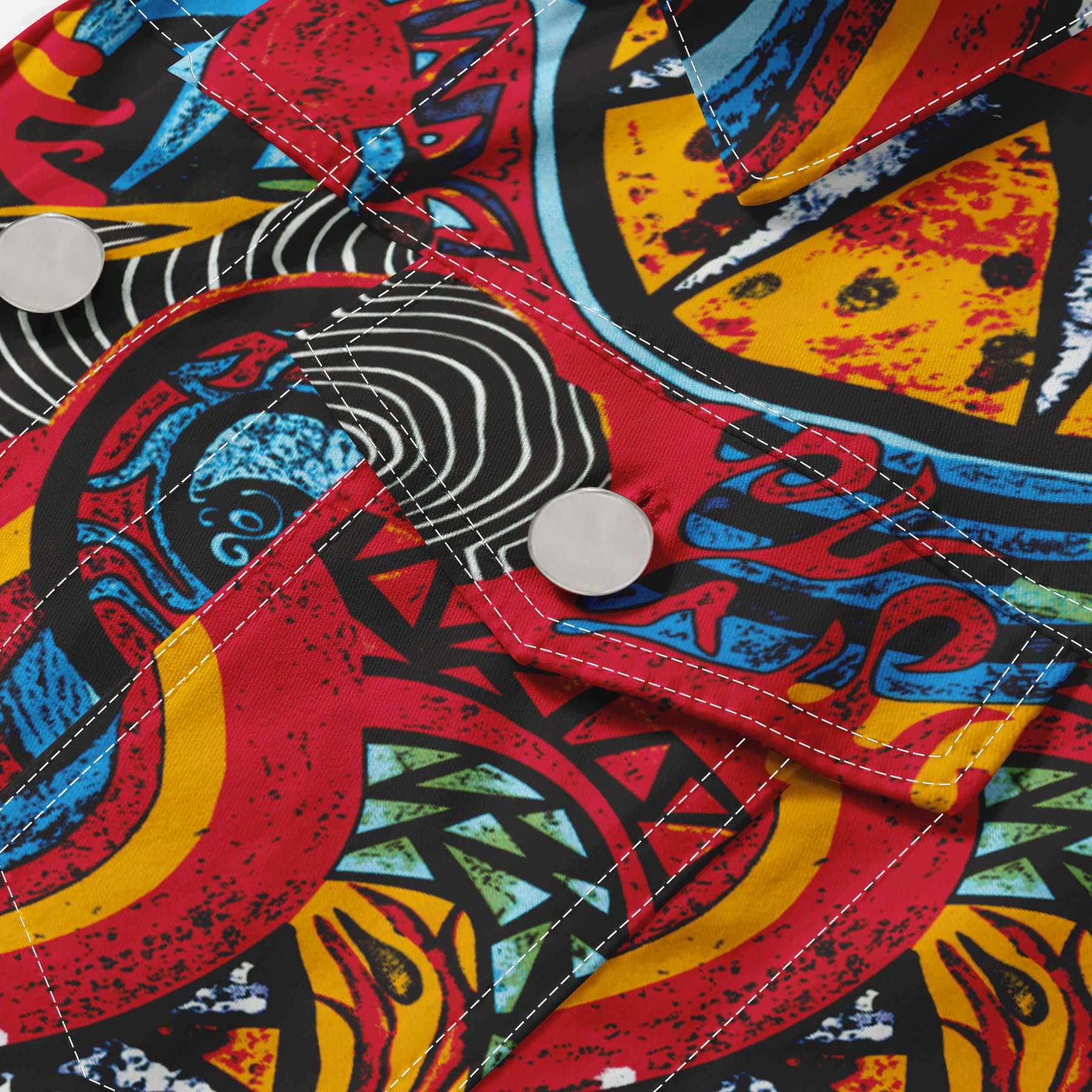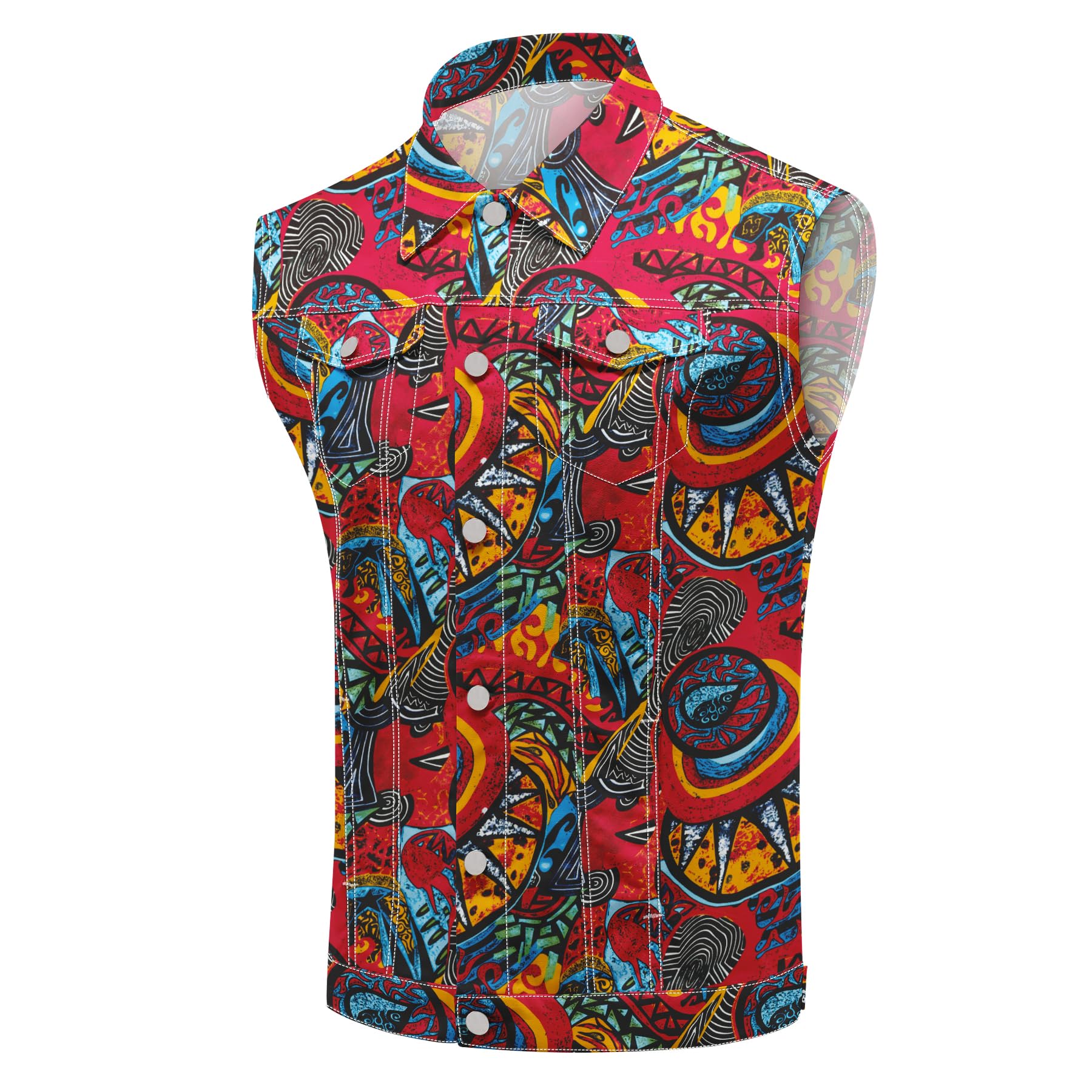 - Stylish Design --- The stylish and innovative print design gives this jean vest a distinctive look and makes you the center of attention in the crowd.Classic button closure design, easy to put on and take off. Buttons on the cuffs are designed to make it easy to adjust the elasticity of the cuffs.