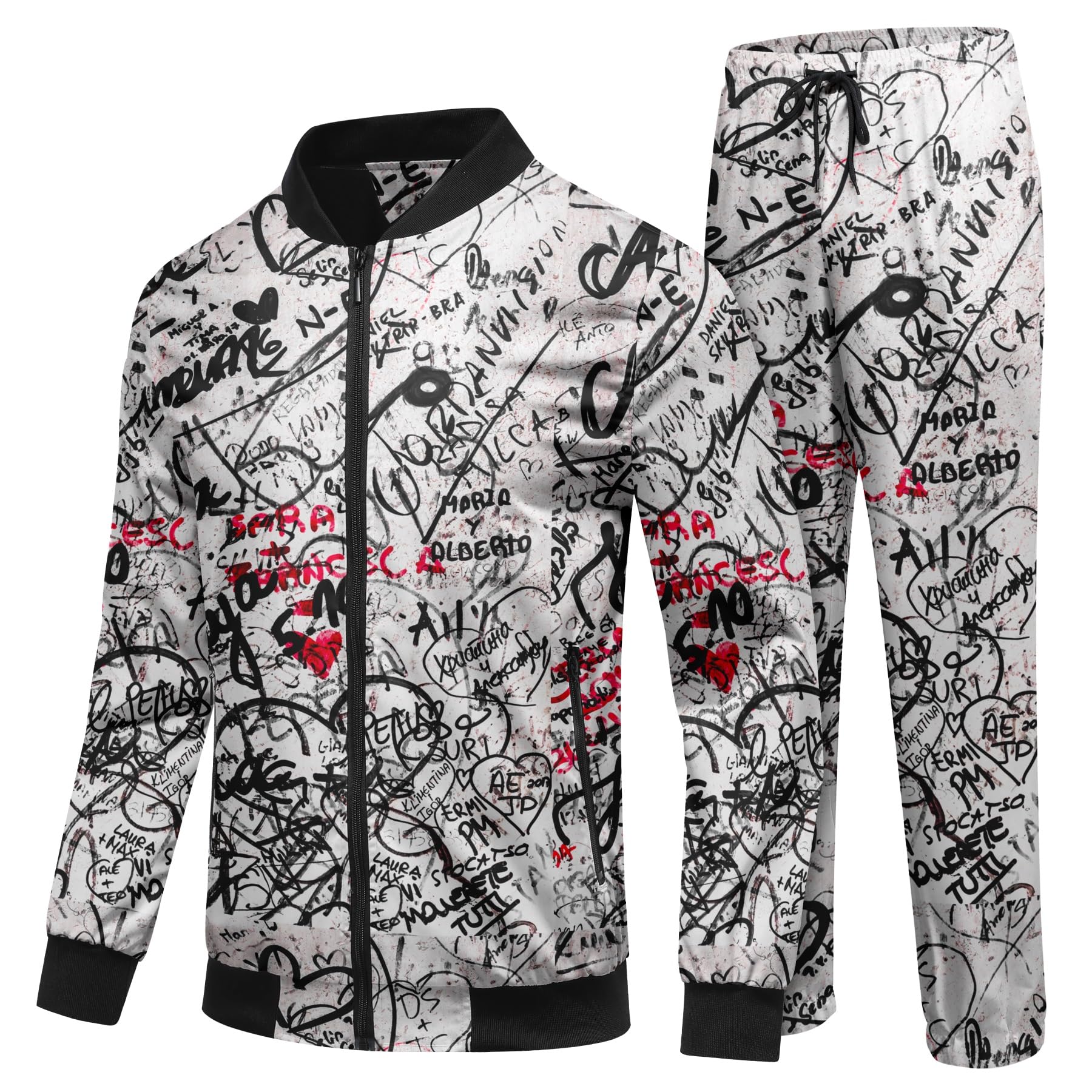 - TRACKSUITS SETS --- Men's waterproof printed sweatshirt two-piece set consists of a jacket and sweatpants.Stand collar, ribbed hem and cuffs long sleeve keep you warm and fashion. Casual printed jacket with full front zipper offers easy on-and-off.